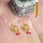 Adorned with vibrant red seed beads, the gold ball pendant is beautifully contrasted against antique gold. The rich hue enhances its elegance and ensures you stand out on every occasion.