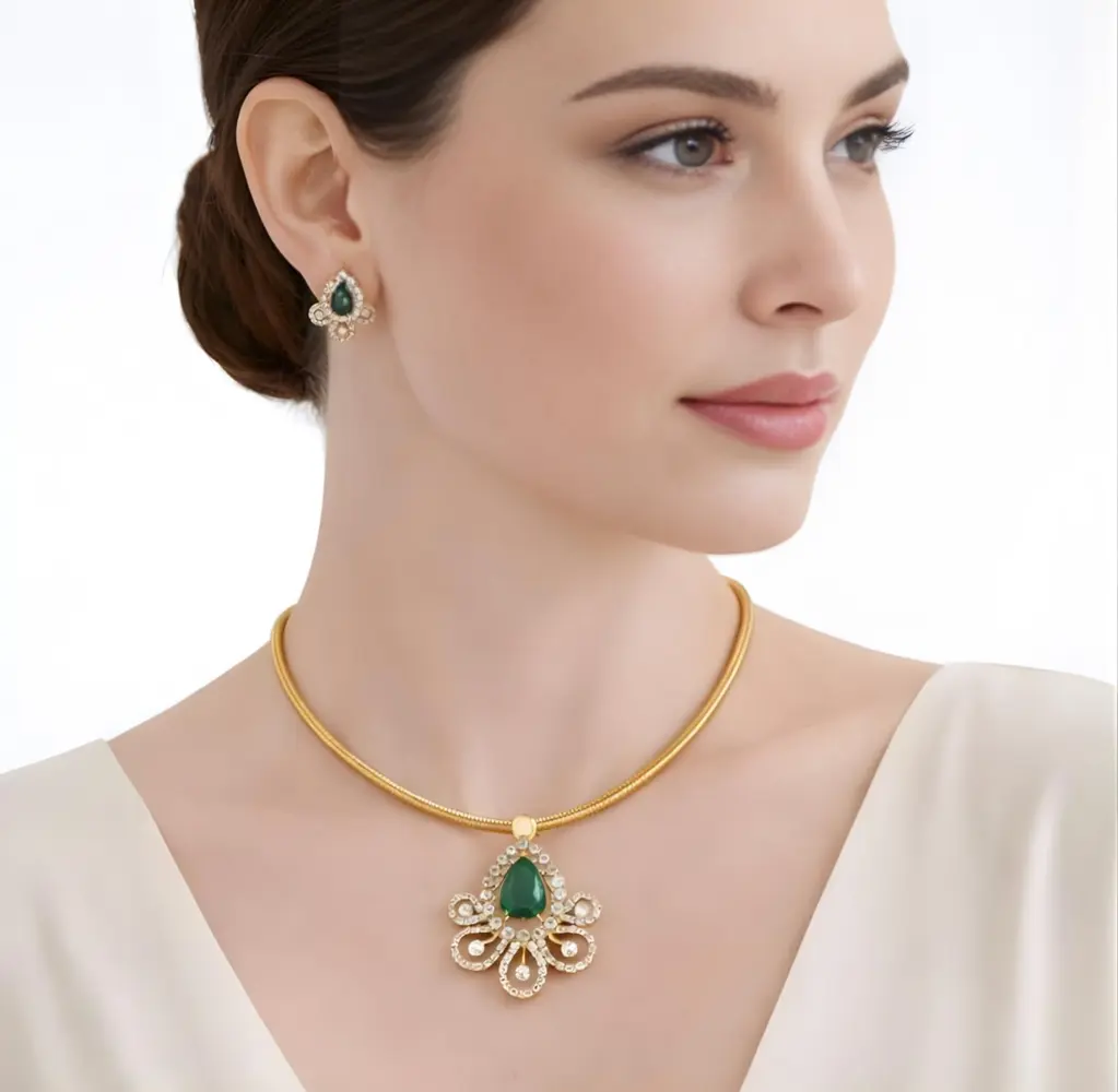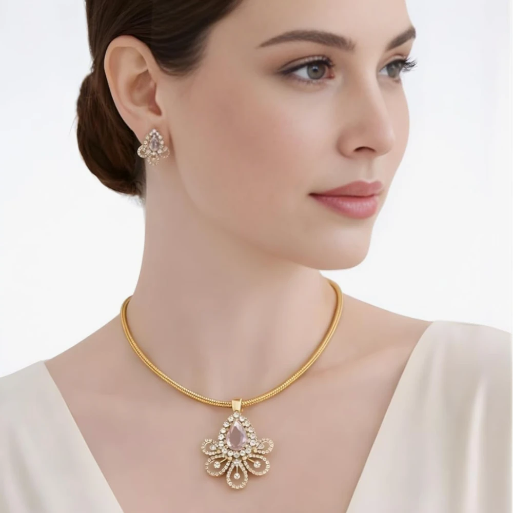 To mimic the fire and brilliance of real diamonds, the set is adorned with high-grade American diamond accents. These stones are precision-set into the gold plating, offering a luxury look that is perfect for high-end events without the premium price tag.