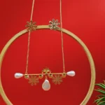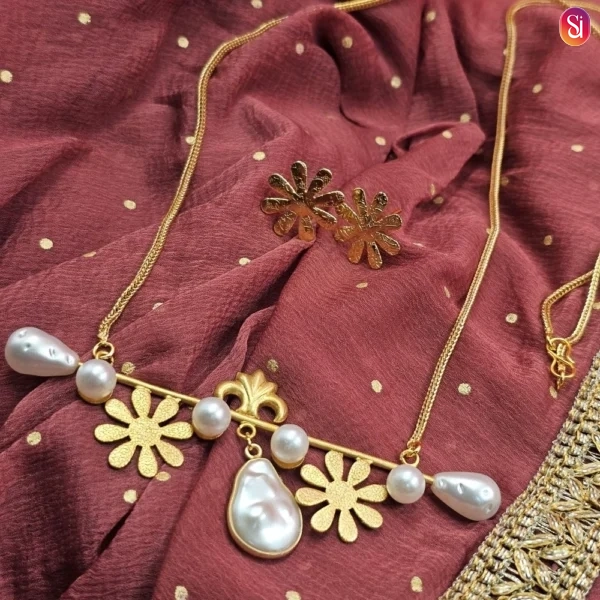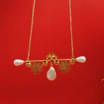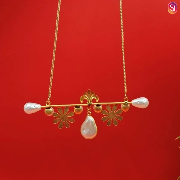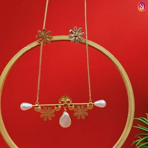 Featuring an elongated gold chain with pearls, this piece functions similarly to a gold chain with locket for women, providing a graceful drop that sits perfectly over high-neck tops or deep necklines alike. The long-chain format is specifically designed for easy wear, allowing you to slip it on without a fuss.