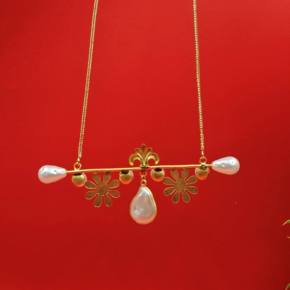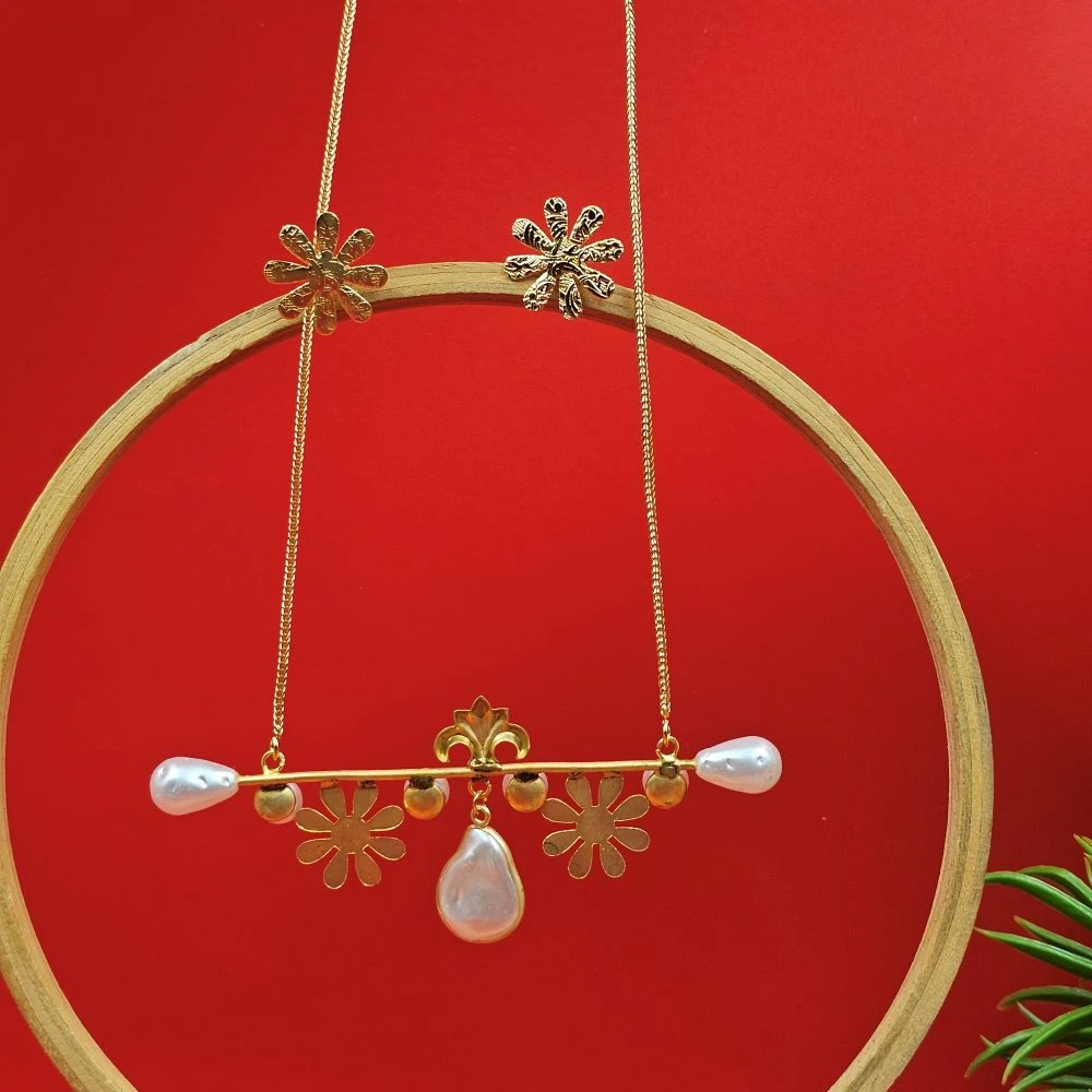 The focal point of this gold necklace with pearl pendant is the artistic integration of a petite golden flower and a high-shine pearl. This delicate pattern offers a soft, feminine touch that breaks the monotony of a plain chain, making it a conversation starter in any setting.