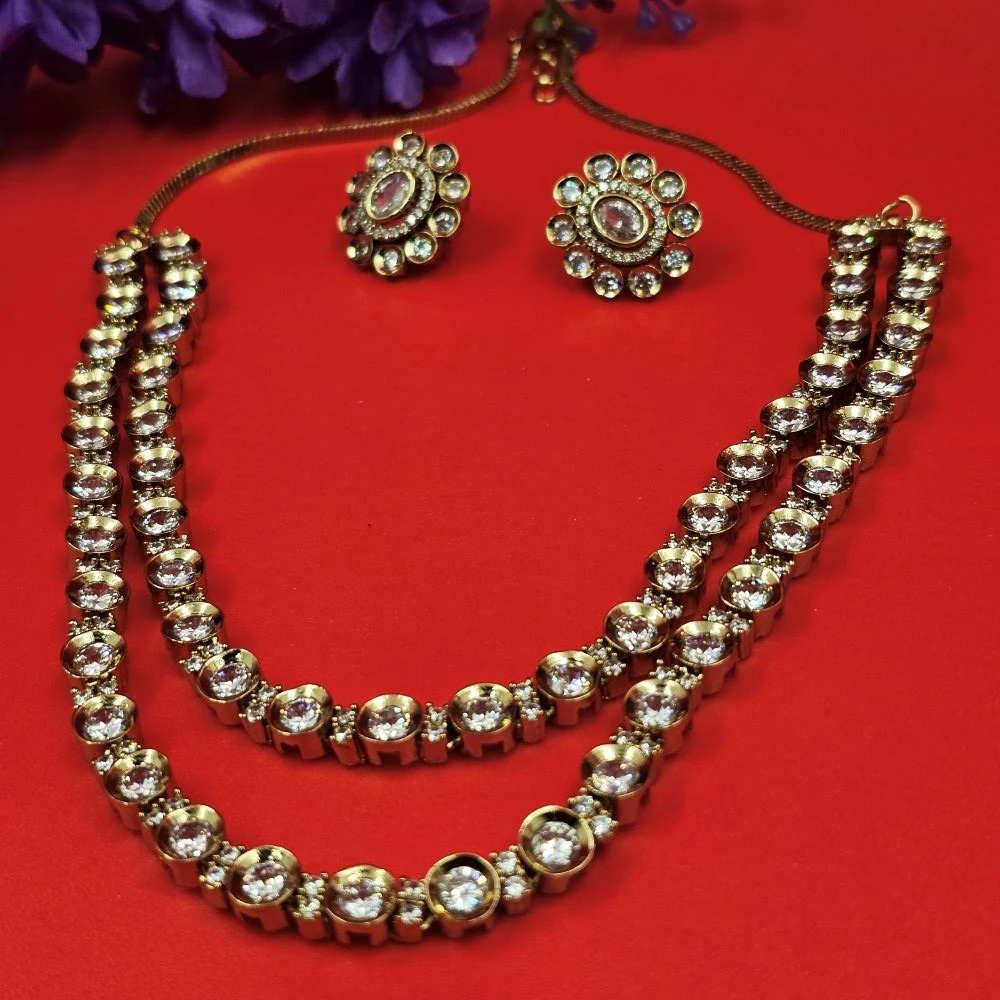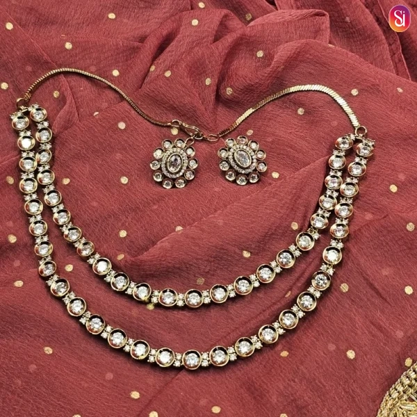 Embrace the luxury of multi-dimensional sparkle with our Double Layer Diamond necklace. Inspired by the rhythmic fall of starlight, this design utilizes two distinct tiers to create depth and movement. It is the perfect american diamond necklace set for the modern woman who wants to make a bold statement without losing the refinement of classic aesthetics. This piece is a bridge between the grandeur of traditional Indian tiers and the sleekness of contemporary western trends.