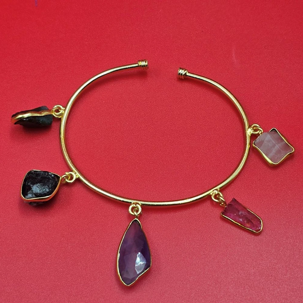 Bring a touch of personality to your corporate look. The elegance of the golden brass ensures the bracelet remains professional, while the small Druzy charms add a subtle, sophisticated sparkle to your office attire.