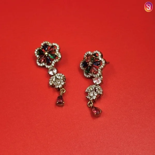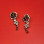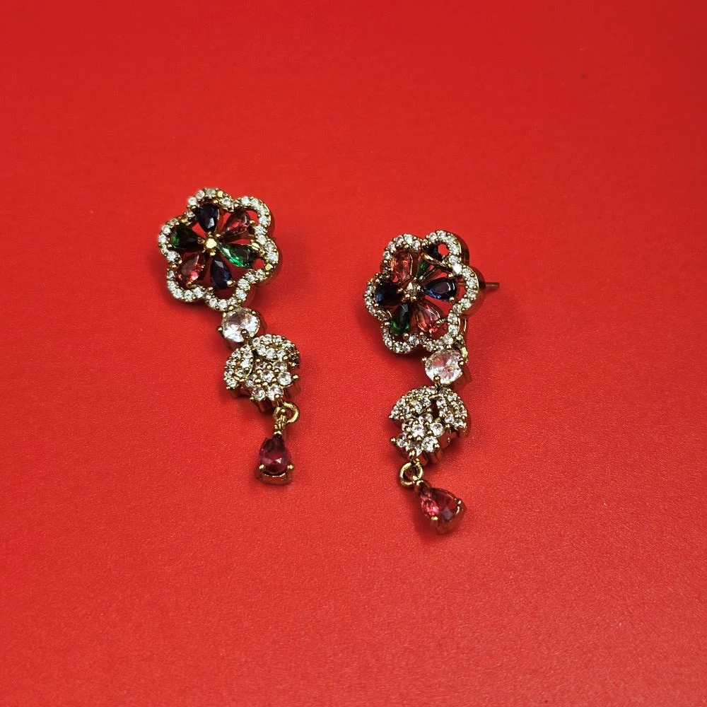 To complete your ensemble, this set includes a pair of dropped earrings. These earrings mirror the floral pendant, cascading delicately to frame the face and add a touch of rhythmic movement to your festive or party look.
