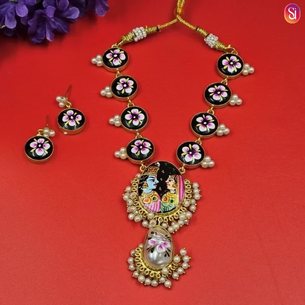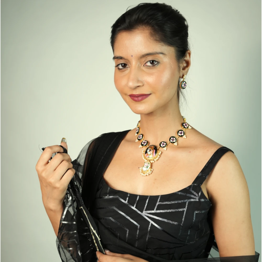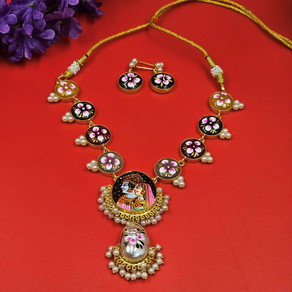 Sanaadhya Hand Painted Meenakari Rajwadi Necklace