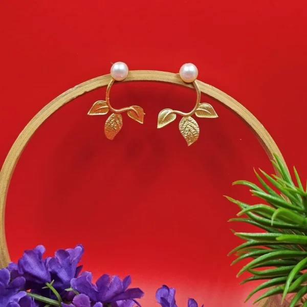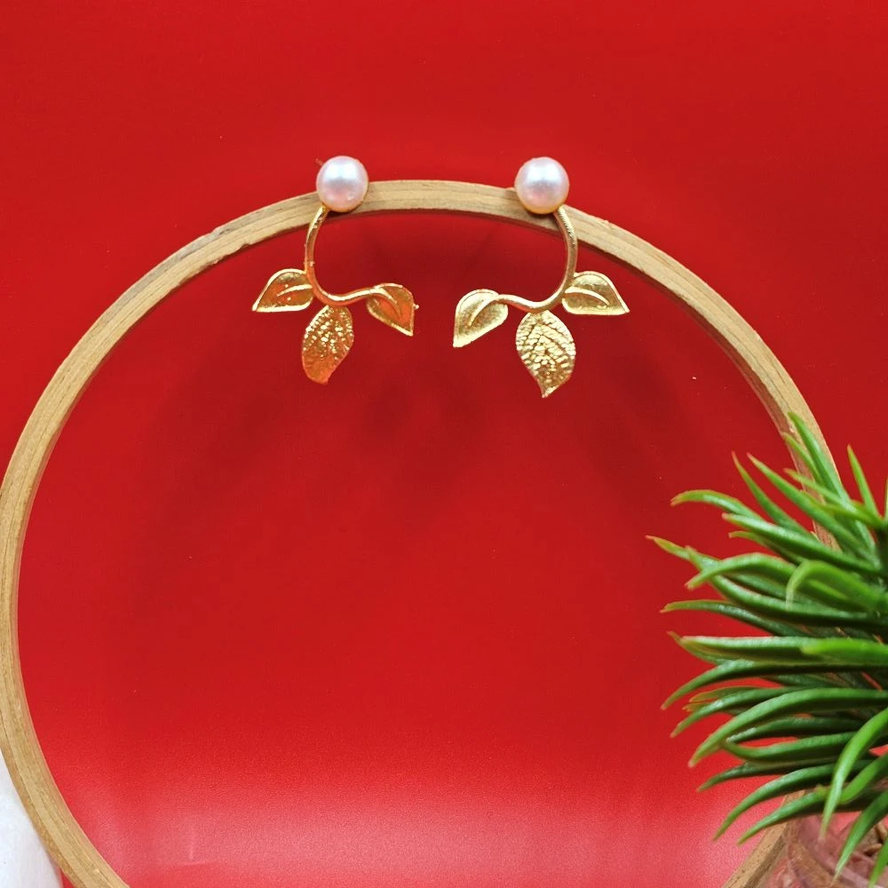 Each stud is set with a high-quality pearl, known for its smooth surface and rich iridescence. As premium pearl stud earrings, they offer a classic glow that softens the golden tones of the leaf, creating a harmonious and balanced look.